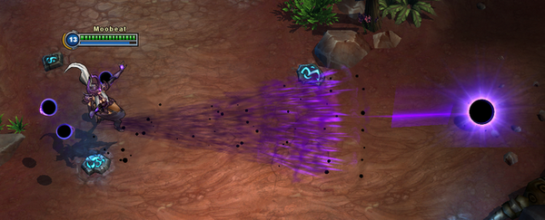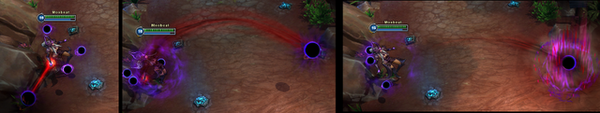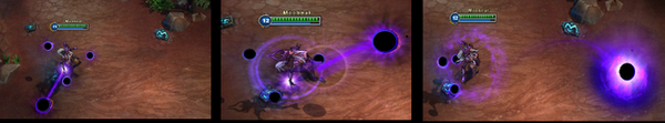 第一次使用:抓取一个黑暗球体,或者敌方小兵,或者任何中立生物,对黑暗球体使用可以延长黑暗球体的持续时间.