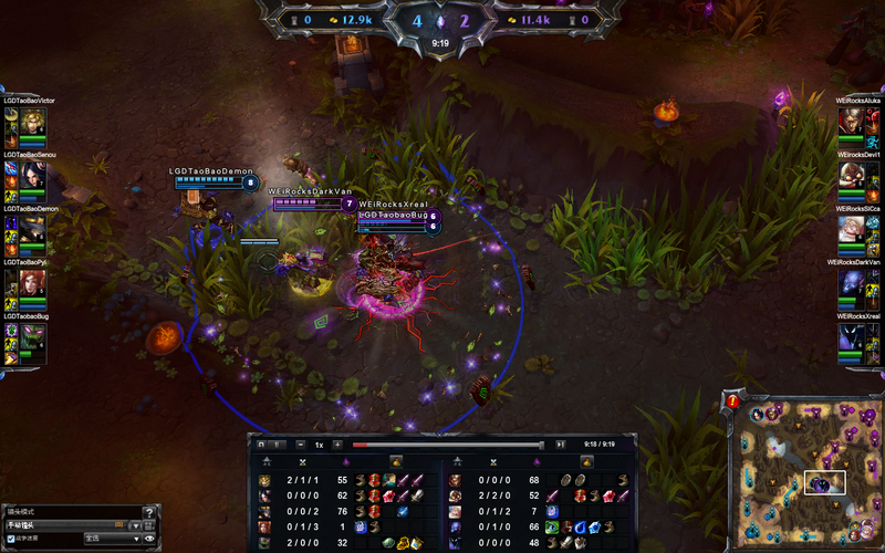 双方开局互相想偷对方的蓝BUFF,并未发生遭遇。最后WE的梦魇选择了打红BUFF,LGD的努努则是在队友的配合下顺利拿下对方的蓝BUFF。