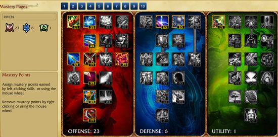19:BEST RIVEN 的天赋有点怪异。,23 / 6 / 1,23点还不点-CD,暴击增伤上面的攻击力全点,增伤不点,防御双抗6点,血量上限不点。