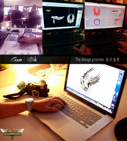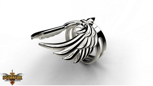 LOL专属概念戒指由错钻独家赞助,其设计团队来自欧洲。该戒指将“英雄,为你而战”的游戏概念作为创意核心,并结合《英雄联盟》剑与翅膀的LOGO,打造出了9套18K金精致戒指。
