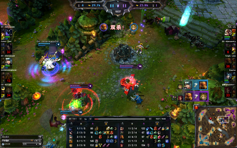 开局EHOME从对方红BUFF点一路绕后,5人蹲点观察对方的F4,瞎子也是毫不知情。但是由于缺少控制,没能获得一血,比较可惜,瞎子交了个闪现走人。接下来3min,梦魇直接上路抓这个没有闪现的上单瞎子成功。刀锋拿到一血。