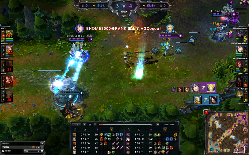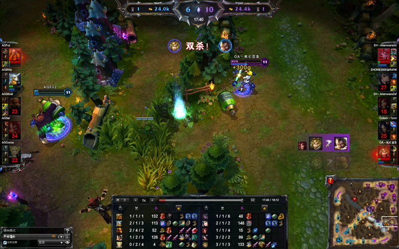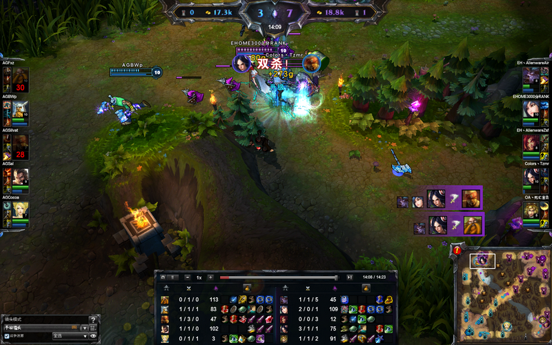 12分钟左右,EH的中路狐狸在抓住对方酒桶回家的时机果断游走下路,成功帮助下路拿到一次三杀,酒桶赶来却为时已晚。紧接着狐狸再次立功,盲僧和酒桶想GANK上路帮助奥拉夫抓一次刀妹,却又被及时赶到的狐狸化解危机还成功帮助刀妹拿到双杀,AG迅游这两次小规模团战亏得有点多。