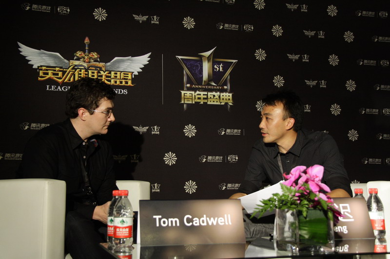 9月22日,公测一周年的火爆MOBA类游戏《英雄联盟》在上海举办了一场令人难忘的盛典活动,还原游戏场景的现场设计和逼真的coser令全场玩家大呼过瘾,CLG.EU与WE的表演赛更是让人血脉喷张。当天下午,《英雄联盟》开发商RiotGames游戏策划副总裁TomCadwell与腾讯《英雄联盟》发行制作人冯一迟接受了媒体采访,并透露了诸多游戏未来的重要计划,值得一提的是,所有问题都来源于玩家论坛中频次最多的提问。