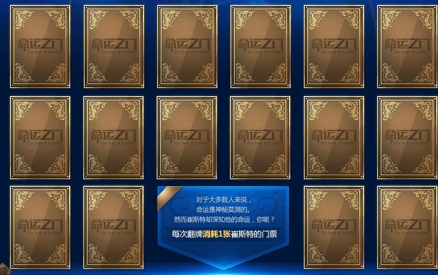 每次翻牌将会消耗一张“崔斯特的门票”,每张面值 5 Q币;