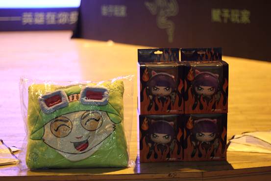 图为现场丰富的礼品,来自腾讯的玩偶以及Razer给力外设。