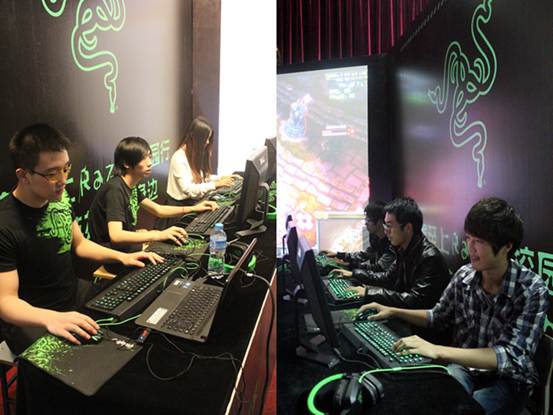 活动现场大量英雄联盟玩家接踵而至,带来各式各样Razer的外设产品现场大比拼。更有漂亮游戏美眉也在上场大显身手,真可谓巾帼不让须眉。