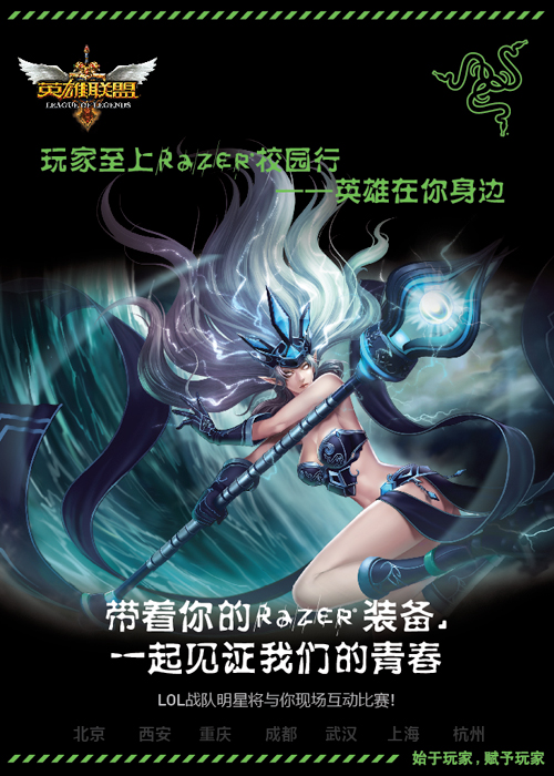 如果你和我们一样正在玩英雄联盟,拥有关于英雄联盟的难忘经历,那就加入我们,2012 “玩家至上”Razer校园巡演西安站,我们在西安不见不散!