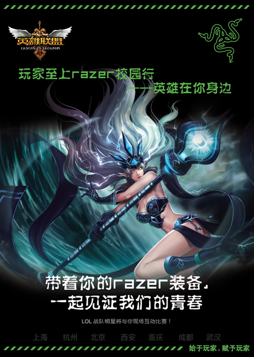 如果你和我们一样正在玩英雄联盟,拥有关于英雄联盟的难忘经历,那就加入我们,2012Razer“玩家至上”校园巡演成都站,我们在成都与你不见不散哦!