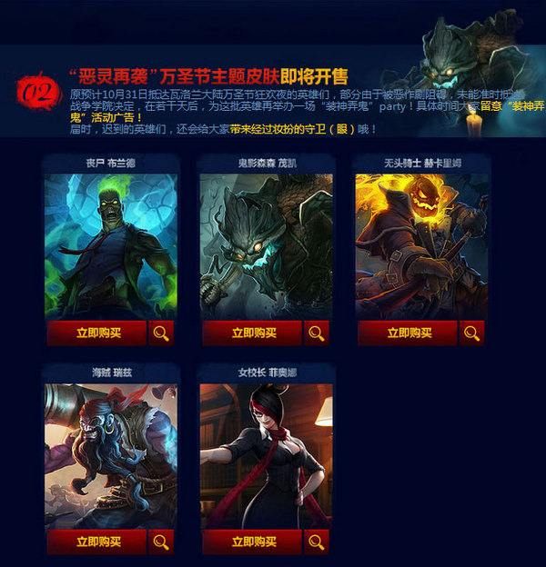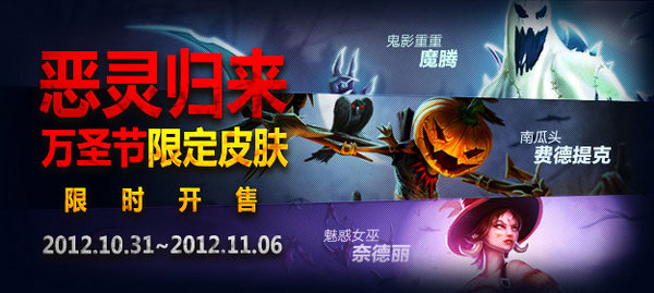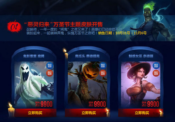 国服万圣节皮肤上架:去年皮肤开卖 新皮肤延后
