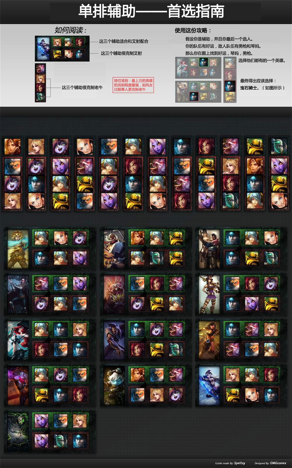 还在为辅助选什么而烦恼么?还在被自己的ADC狂喷不会配合么?一张图教你选人。一瞬间变身职业辅助。