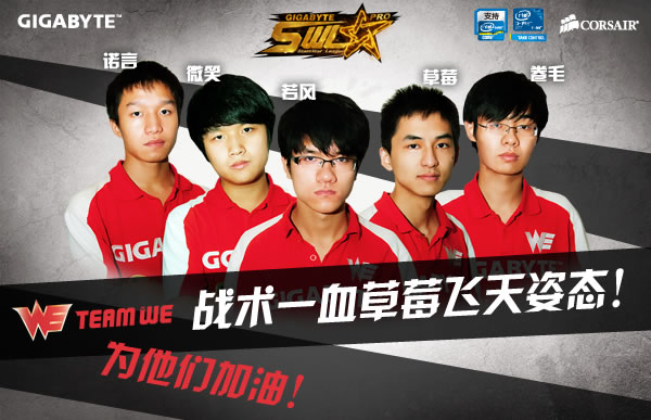 WE.GIGABYTE:成立于2011年4月的WE.GIGABYTE英雄联盟分队在经历了2012年的一系列人事变更以及团队磨合之后,目前正以一套稳定的阵容不断向着职业生涯最高峰努力攀登。作为中国最顶尖的LOL职业战队,他们在国际赛场上也有着不俗的表现,不断为中国战队赢得尊敬并改写着中国队伍在国际大赛上的历史最佳成绩,为英雄联盟项目的欧美、韩国、中国三足鼎立奠定了基础。