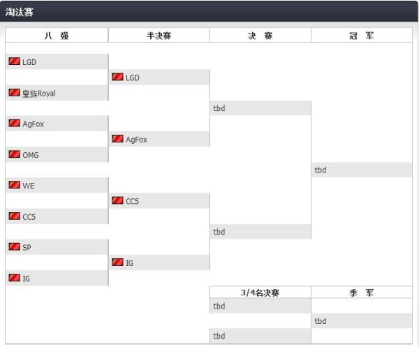细心的玩家可能会发现,本次四强赛的对阵颇有些戏剧性,LGD与AG迅游同为A组出线队伍,而IG和CC5也同为D组的第一第二名,这其中,IG进入四强并没有出乎大家的预料,LGD和AG迅游的出线也是靠着自己强大的实力和稳定的发挥,相比之下,CC5这支业余队伍的四强之路却稍微有些运气成分,在小组赛中,WE.I的弃赛为CC5铺平了出线道路,而在八强中,又是WE.G的弃权,让CC5不费吹灰之力地得到了本次比赛的四强名额,看来,幸运女神也是非常照顾CC5,不过在接下来的比赛中,CC5还是得拿出实力,在玩家的面前,证明自己队伍!