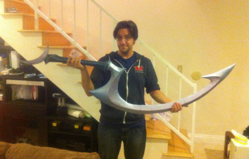 近日,拳头公司资深美术设计师IronStylus在网上卖萌,发了一张他在家中手持英雄皎月女神戴安娜武器的照片。据悉,这是他自己用泡沫DIY的作品。