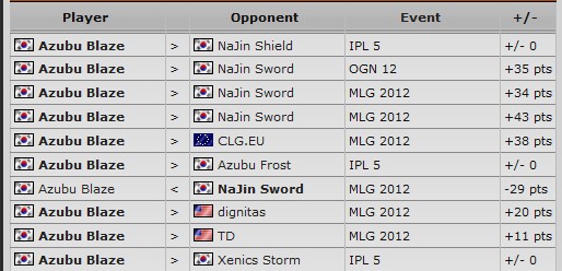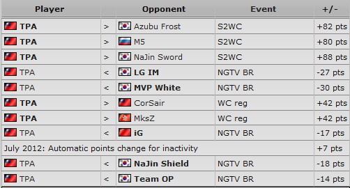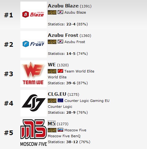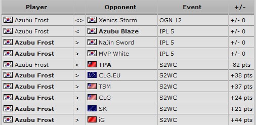 这个分数根据最近战绩来区分,赢一场排行比你后的队伍加分非常少,而输一场排名比你后的队伍却会非常多。(比如azubu.frost输给tpa被扣了82分,而WE在SWL决赛上取胜LGD却只加了4分)