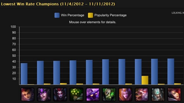 厄加特和扇子妈依旧占据前列,而炸弹人代替时光进入榜末,每期的不受欢迎英雄都变化不大,拳头公司可以考虑下对于这些冷门英雄的处理方式了。