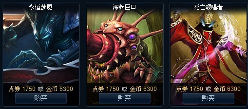 三个6300英雄半价出售,值得一提的是用游戏币买依然是6300,半价是指点券、Q币、RMB。