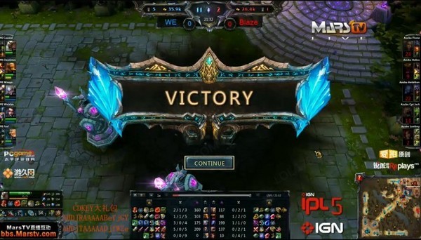- (2012-12-02) 绕眼gank到位 WE的复仇之怒 20比1大比分击败EU