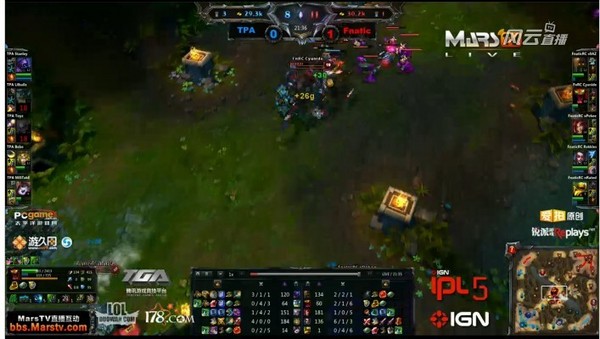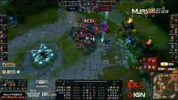 TPA可能顾忌到上一场传送卡特的威力,这次直接将其请出场外,同时自己拿出了本次IPL5最成熟的冲脸流战术;而Fnatic则想用掘墓的大招外加婕拉的后手来破冲脸。