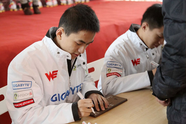 12月26日,圣诞节刚过一天,WE.GIGABYTE的5位帅小伙们就风尘仆仆地赶到了南京邮电大学仙林校区,来参加一场别开生面的“中国邮政《英雄联盟》首套典藏明信片套装签售会”,而南京的撸友们也有幸成为全国最早拿到有世界冠军战队全体签名的明信片套装的幸运儿。