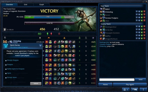 近日有美服玩家发布截图表示,Riot在其结束游戏后进行了Replay功能调查,或许这预示着录像回放功能将上线。