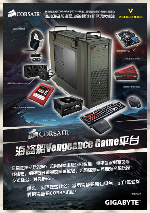 海盗船创立于1994年,是全球高效能PC零组件领导型厂商,其高效能产品在全球各地广泛地被游戏玩家、超频玩家以及发烧用户追捧。我们秉持着设计与 制造方面的专业知识,在全球获得广泛赞誉,产品线涵盖DDR3内存、USB U盘、电源、固态硬盘、音箱、游戏外设、系统监控及调整设备、水冷散热器以及机箱。