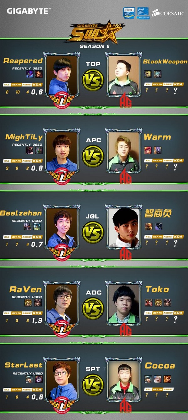 由于首战台北神秘之师TPS大显神威,原本预估实力在本组排名前三的SKT突然发现出线形势陡转急下。揭幕战中惨败TPS,直接将他们逼上了绝路,本轮与AG的这场比赛SKT必须全力拿下才能继续保有小组出线的竞争力。而利好消息是他们的对手AG近期也进行了一些人员调整,如果SKT能够把握住AG立足未稳的机会,将很有可能2:0直接拿下这场比赛。
