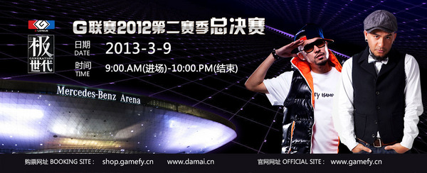 2012灭世之日已经渡过,电子竞技再创新高之时已经到来。由上海文广互动电视有限公司SiTV,上海游戏风云文化传媒有限公司(Gamefy)主办的2012G联赛第二季总决赛即将于2013年3月9日在上海梅赛德斯-奔驰文化中心(上海世博文化中心)拉开帷幕!
