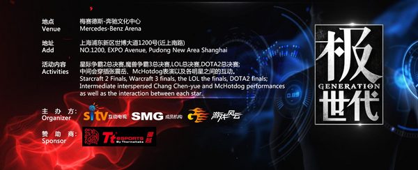 经历了无数次的洗礼,跨越了无数坎坷的道路,中国第78项体育运动“电子竞技”,终于以面目一新的姿态展现在大家的眼前!2013年3月9日,新年过后的第一个电子竞技大型狂欢派对:2012G联赛第二季总决赛,将在有史以来最大最华丽的舞台:上海梅赛德斯-奔驰文化中心(上海世博文化中心)激情上演!张震岳和Mc Hotdog也将在这个舞台带领大家挥动双手,放声高歌!决战就在眼前,荣耀之门即将打开!(友情提示:嘉宾的劲爆表演在现场的观众才能真切的感受到哟!大家都懂得哈!)