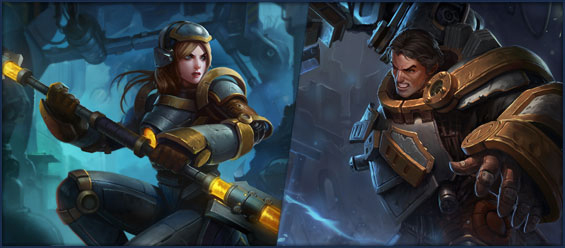 他们的新装备是高科技军事装备的结晶,并有新的动作动画和配音。盖伦将挥舞着经过充能的经典大剑,他的技能也将有新的特效。拉克丝的穿透战场魔法爆炸电光能也会有新的特效,并且附加有冷色的光辉。