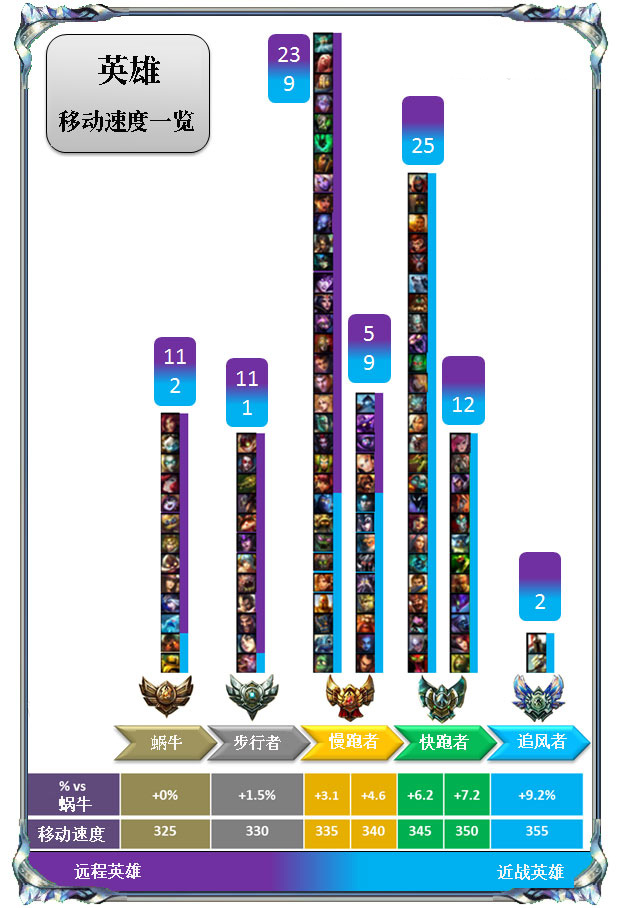 在众多英雄中,到底谁的基础移动速度最快?最近,有国外网友就就制作了一张英雄基础移动速度的对照图,其中,剑圣和潘森荣膺“追风者”的称号。