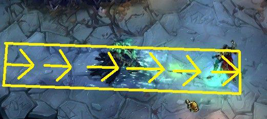 技能释放条件看似比较复杂实际非常简单,鼠标的方向就是锤石推的方向。与锤石和鼠标的位置有关。与英雄脸的方向无关。