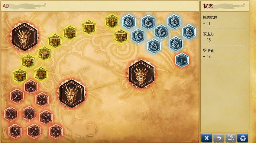 采用和ADC一样的AD向符文,16点AD在前期对线十分方便补刀,而且加上Q被动技能的叠加伤害是魔法伤害,所以并不需要过多破甲属性,AD装足以应付大多数战斗。