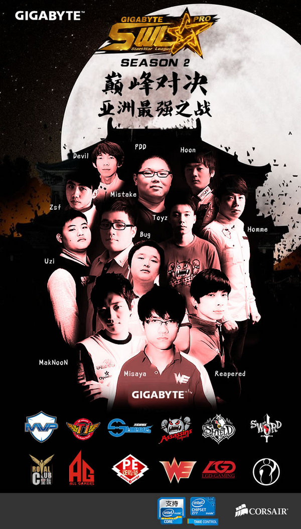 技嘉SWL2013年度第一赛季,技嘉、Intel和海盗船为死忠撸粉带来两支新科世界冠军队伍、多家中韩顶级俱乐部的顶级对决,邀请你们一起欣赏横跨2013年的超耐久赛事!