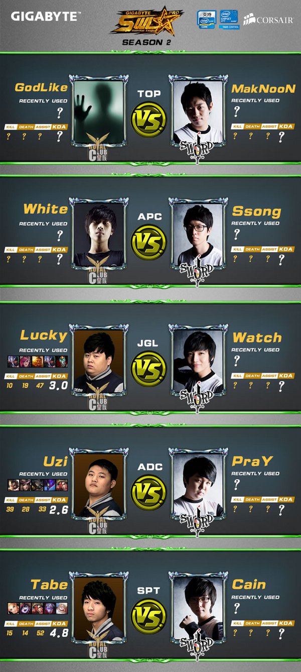 千呼万唤始出来,由MakNooN领衔的韩国OGN联赛新科冠军Najin.Sword终于要登场了,首战将面对的是近期势头迅猛的皇族,如果仅从对位情况来分析,皇族除了上单的Mor相比MakNoon稍逊一筹之外,其他每一个位置上的个人实力都应该是不逊于Sword的,但Sword作为纪律性超高的韩国职业队,比赛中所展现出的战术执行力恐怕是目前这支皇族还难以企及的。当然,小编还是希望皇族能够取得胜利,保守估计两队能够战成1:1平。