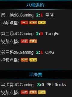- (2014-11-12) G联赛半决赛 King连扳两局逆转战胜IG