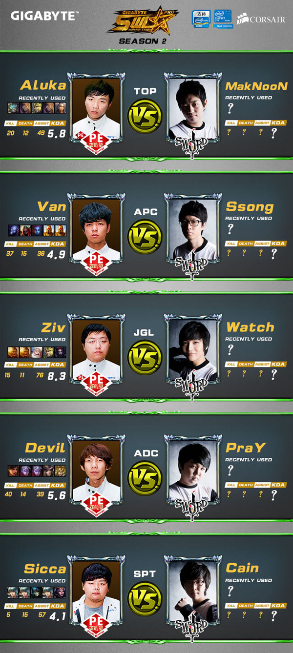 从位置实力来看,打野的Ziv将有可能成为本场比赛的关键所在,由于对手上单的MakNooN攻击性非常强,如果放任不管Aluka很有可能成为PE的突破口,而如果能够更好的利用对手的攻击性打法,则有望让MakNooN明白,上单不是一个人在战斗!