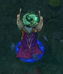专注决心(W) (70/80/90/100/110点法力值,16/15.5/15/14.5/14秒冷却) 将卡尔玛与敌对英雄连接,暴露他的位置,并在2秒内造成60/110/160/210/260(+0.6AP)点魔法伤害。如果连接没有断裂,则会将敌人缠绕1/1.3/1.5/1.8/2秒。 梵咒增效 - 新生:额外造成75/150/225/300(+0.6AP)点魔法伤害,并在持续时间内治疗卡尔玛75/150/225/300(+0.6AP)点生命值。