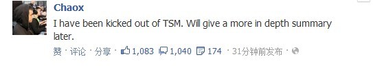 Chaox微博吐苦水:并非自愿离队 直接被TSM开除