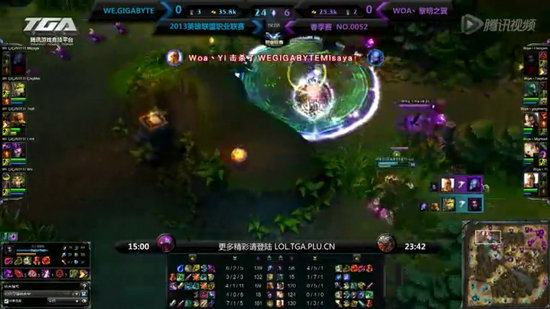 WE在压制了WOA之后经济领先1万之后装备开始碾压,在瑞兹被秒,辛德拉不在的情况下3打5并团灭对手,之后越中路2塔在对面高地上0换4,之后在野区再次团灭对手,WOA选择GG。WE打出了一场让人觉得无解的暴力比赛。