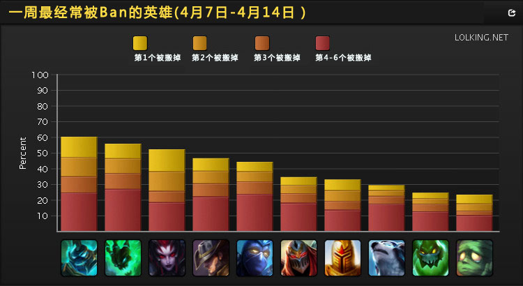 卡牌、迦娜继续保持前2名地位。深海泰坦 - 诺提勒斯新入榜,一下子就到了第6的位置。