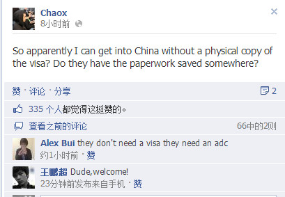 美服资讯:Chaox老妈烧掉了他的中国签证