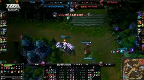英雄联盟职业联赛春季赛第六周第一比赛日第二场比赛由OMG对阵华义Spider。