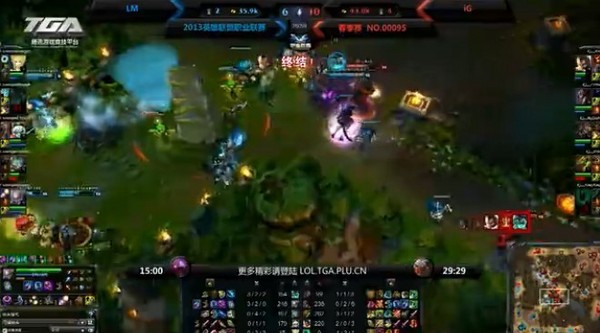 中期两边各种打的都比较谨慎,没有爆发激烈的团战,两边都依靠抱团推掉对手外塔。平衡终于在24分钟被IG打破,IG打掉小龙后中路抱团抓到机会击杀对手两人。27分钟LM中路抓到落单锤石并且将其秒掉,但是IG支援迅速男枪鳄鱼直接收割战场,IG顺势拿下中下两路二塔。