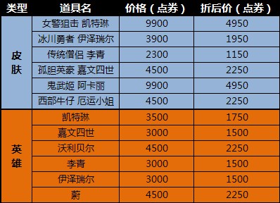 同时,腾讯将在4月28日10点—5月2日10点对以下英雄皮肤进行五折限时销售,各位召唤师千万不要错过哦!