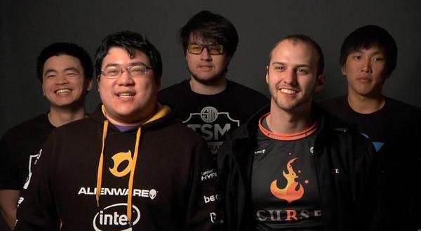 北美全明星阵容。左起:Xpecial,Scarra,Dyrus,Saintvcious,Doublelift