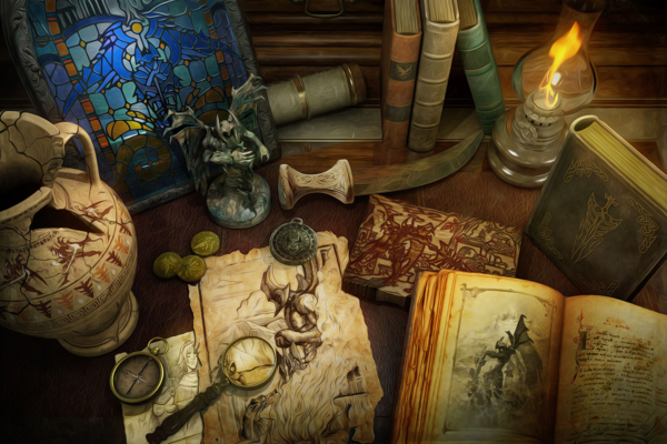 我把所有东西都放到了桌上,大家都来瞧瞧吧。先说明一下,这些遗物是在整个符文之地收集来的,他们来自不同地区,但都有一个共同点:一个黑暗、残忍的人物,挥舞着残剑。