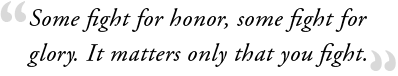 "有人为名誉而战,有人为荣耀而战,而最重要的仅是你开始战斗了。"