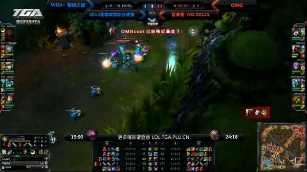 OMG将WOA的视野控制了之后,发育优秀的劫上下单杀,EZ和兰博只能被迫防守塔下,19分钟OMG轻松拿下大龙,OMG经济领先1万3。
