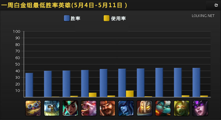 EZ再次成为白金组最热门英雄。加里奥夺走了大头最冷门宝座。胜率榜单上,卡牌、迦娜继续保持前2名地位。德莱文迅速蹿升只第四位,小胡子有挖掘潜力。比较令人在意的是扇子妈好像又要有夺胜率倒一的冲动了。 - -! 新AP英雄丽桑卓从倒一升到了倒六