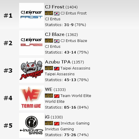 CJ Frost继续保持第一,TPA降至第三,CJ Blaze升至第二。WE从第7升至第4,iG排第5,OMG排第7。